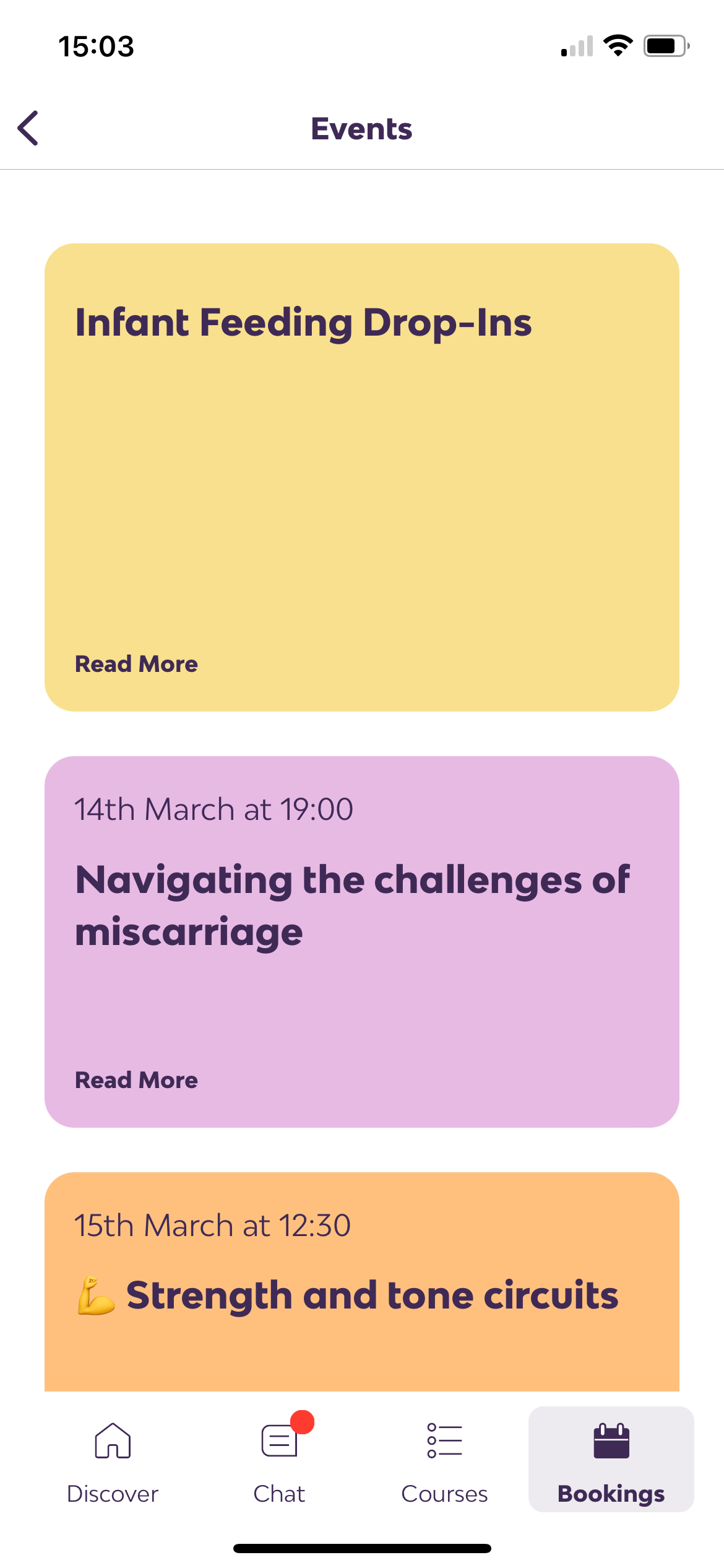 Each week we give Peppy users access to small-group events featuring expert practitioners and guest speakers talking on themes like ‘Preparing for birth’. And for your workforce, we offer a calendar of virtual live events for their training and education, on topics like ‘Supporting your return to work’.